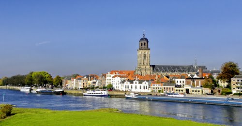 Maar het grootste kapitaal van Deventer is de “brede rivier traag door oneindig laagland, rijen ondenkbaar ijle populieren, de boerderijen verspreid door het land, boomgroepen, dorpen, geknotte torens, kerken en olmen, in een groots verband.”* De IJssel. Stromend goud.