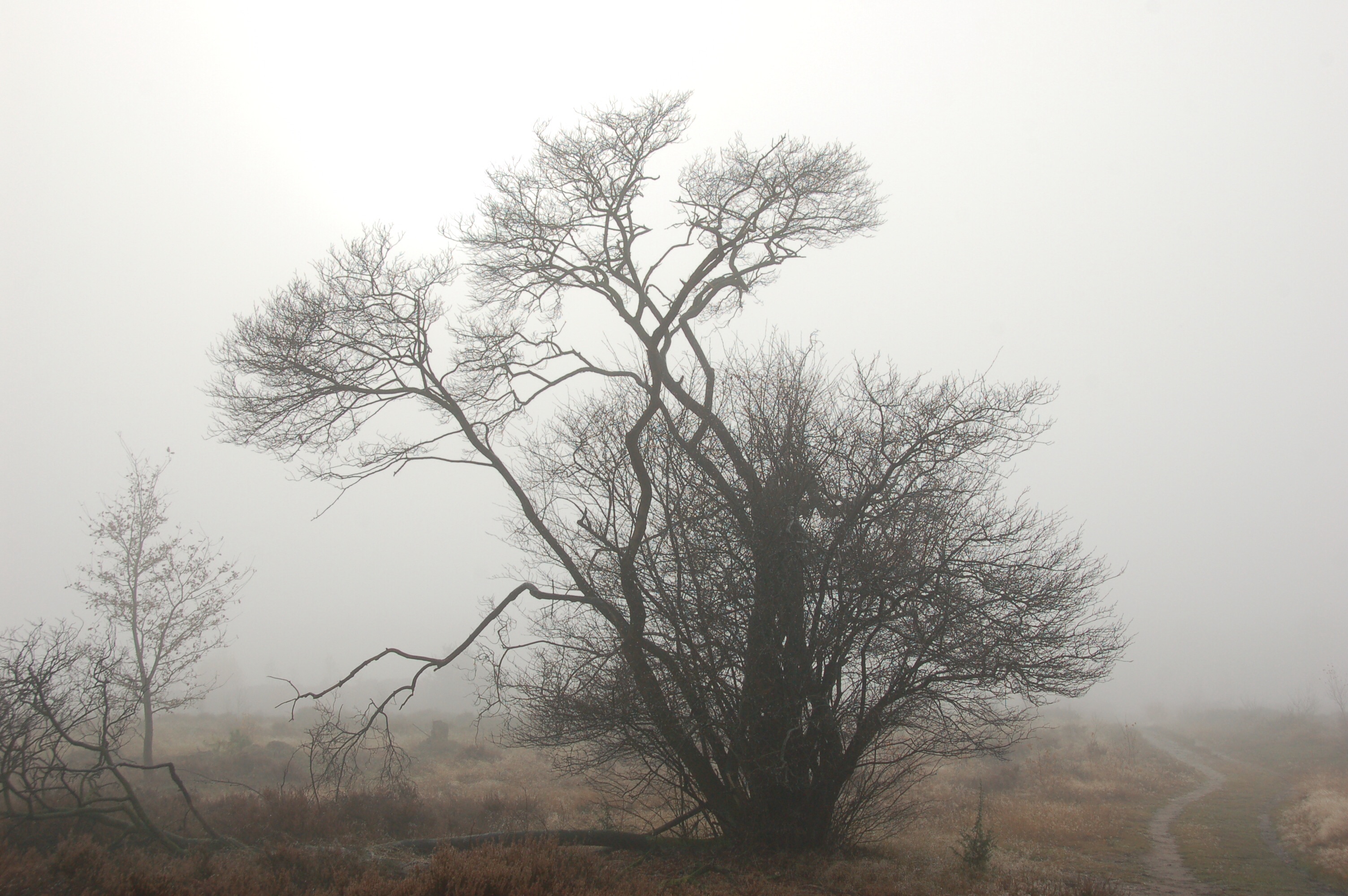 Hier op de hei staat een krent. Helemaal alleen. Je ziet hem al van verre. Hij is prachtig. Iedere dag van het jaar. Ik weet zeker dat de boom nauwelijks op zou vallen als je hem zag staan midden in het bos tussen andere bomen. In het eenzame lege landschap komt hij pas goed tot zijn recht. Kun je zien hoe mooi zij is. Die boom van mij.