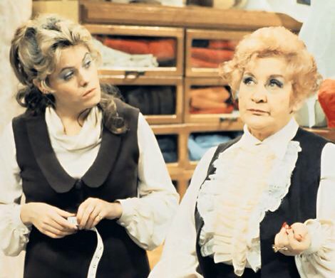 Ze schudt met haar hoofd. Nee, niet doen.Wat vindt u mevrouw ? De andere verkoopster komt er bij staan. Ze kijkt met toegeknepen ogen. Haar mond in een tuitje. Dan schudt zij ook. Nee. Ze loopt naar het rek, schuift wat heen en weer en haalt er iets tussen uit. Probeer deze eens. De jonge vrouw houdt het kledingstuk in de hoogte. Ze heeft zweetdruppeltjes op haar voorhoofd en vlekken in haar nek. Ze verdwijnt met het kledingstuk in de paskamer en komt er even later in iets blauws uit. Voorzichtig kijkt ze in de spiegel en dan naar de dames. De beide dames kijken haar verwachtingsvol aan. Wat vindt u zelf? Beter he? Nogmaals wordt er in de spiegel gekeken. Nou? Er komt wat ontspanning in het gezicht van de vrouw. Ze draait zich om en kijkt opnieuw in de spiegel. Is die niet te strak? Nee! Staat u juist heel mooi, dat kunt u goed hebben met uw figuur! En de kleur staat u geweldig. De jonge vrouw begint steeds vrolijker te kijken. En een bijpassend jasje? Verkoopster A vliegt al naar achteren. Triomfantelijk komt ze even later met een bijpassend jasje. Precies goed, kirren de verkoopsters. De jonge vrouw kijkt tevreden in de spiegel en knikt: ja mooi! Past precies bij u! Beetje sportief en toch netjes.