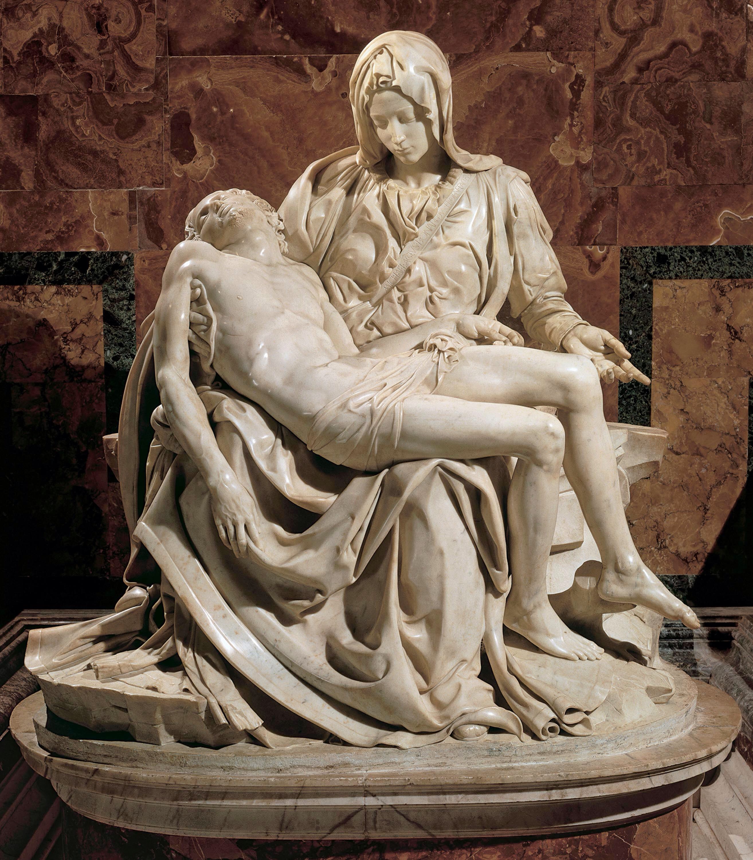 Bij het beeld van Michelangelo in de Sint Pieter in Rome, de Piëta.