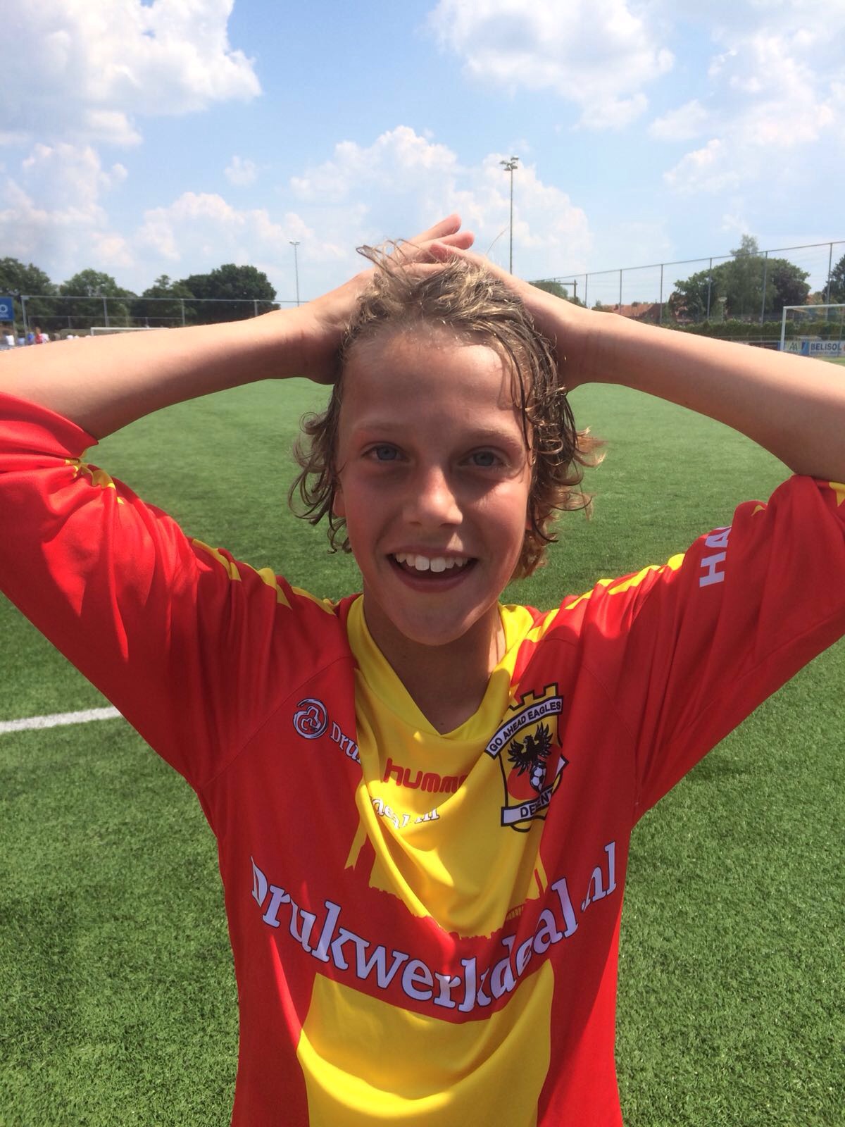 De bloemen staan in de vaas bij de moeder van een vriendin. Ze was er hardstikke blij mee. Ze dacht dat ze van de kerk waren. Nee van de voetbal. Van Go Ahead.