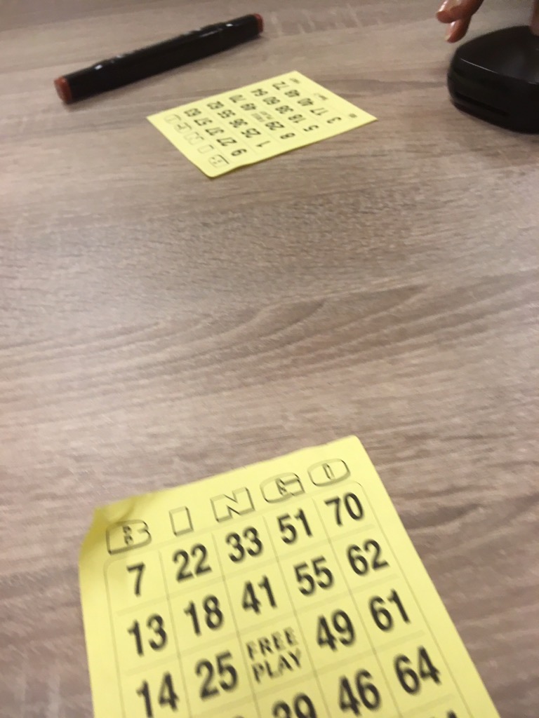Op onze familiedag regende het aan een stuk. Wat doe je met 80 plussers, 4-jarigen, vijftigers, twintigers? :Bingo. Het kleinste bingoapparaatje voor 2,50 aangeschaft bij Intertoys. Een paar onbeduidende prijsjes bij de Action en ziedaar. Een uur lang was het nummertjes strepen, liedjes zingen, als de valse bingo voorbijkwam, en prijsjes ophalen. De stemming zat er goed in. Aan het eind van de dag was iedereen het er over eens dat de bingo het hoogtepunt van de dag was geweest.