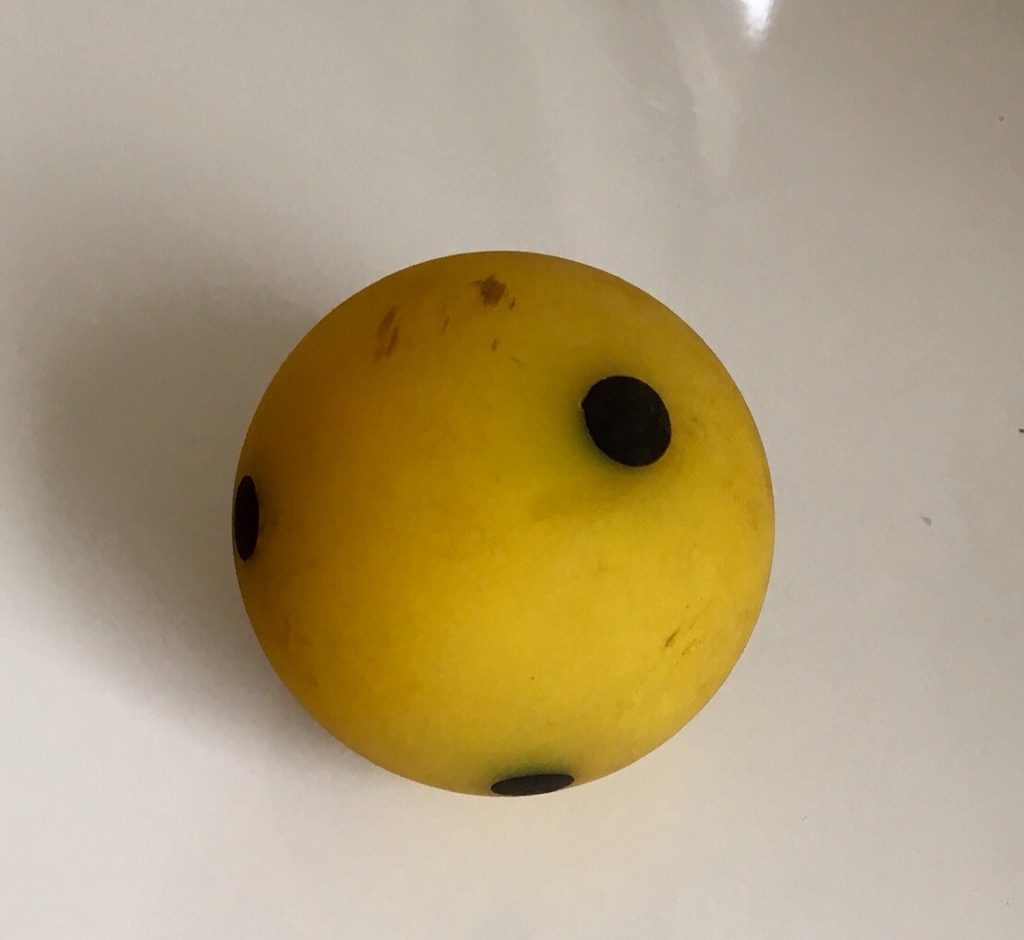 “Geel? “En zo klein!” Ik ben niet enthousiast als ik mijn nieuwe klootschietbal overhandigd krijg.
