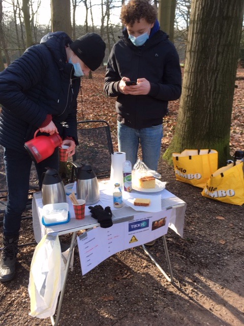 “Is het hier altijd zo druk”?, vraag ik aan de twee jongens aan de ingang van het park. Ze staan achter een campingtafeltje met koffie, thee en chocolademelk met cake. Ze vertellen dat ze hier al een paar weken staan en dat het ieder weekend beredruk is. Ze hebben toestemming van de beheerder in afwachting van een vergunning van de gemeente. Het is een mooie bijverdienste nu hun werk in de horeca niet mogelijk is. Ze vinden het heel leuk werk, de mensen maken graag een praatje. We kunnen betalen met een tikkie. “Zijn jullie student hier aan de universiteit?”, vraag ik. “Nee, nee”, lachen ze, “We zitten in 4 Havo”.