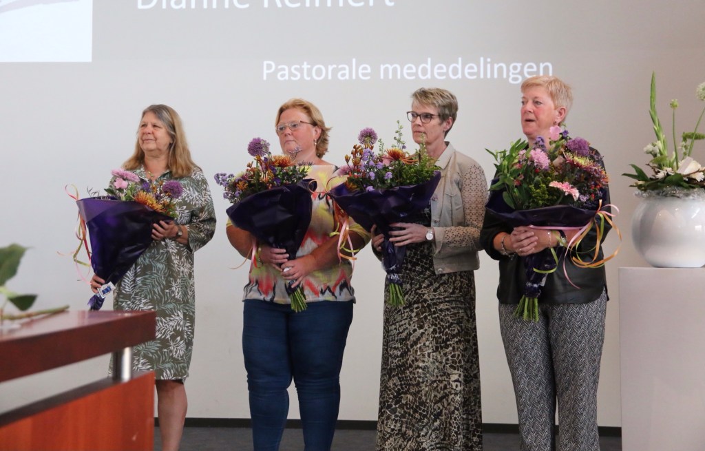 Anno 2022 zitten de kerken niet meer vol, is het aantal kinderen soms op één hand te tellen en is er slechts één kindernevendienst in de gebouwen van de protestantse kerkelijke gemeenschap in Nijverdal. Daarom werd gister afscheid genomen van vier dames die verantwoordelijk waren voor de kindernevendiensten in het andere gebouw. Één van de dames was meer dan 50 jaar actief geweest; begonnen als zondagsschooljuf in de 70er jaren, later in de kindernevendienst. Een andere dame bijna 40 jaar! In de feestelijke dienst ter gelegenheid van de intrede van een predikant werd het extra feestelijk toen de dames in de bloemetjes werden gezet. De bomvolle kerkzaal klapte langdurig. Het werd een staande ovatie.