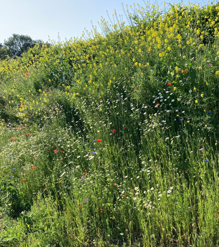 ‘Als je het tunneltje bij Konijnenbelt door gaat rij je er recht op af : een muur van bloemen!’ De dames maken er handgebaren bij, hoe groot, hoe veel. De lofzang op de natuur in een zaaltje in het Het Centrum in Nijverdal op zondagmorgen 4 juni na de kerkdienst in de zaal naast de ruimte waar zojuist de kerkdienst heeft plaats gevonden. Na de dienst is het gebruikelijk dat er samen koffie gedronken wordt, omdat kerk zijn niet alleen kerkdiensten bezoeken is maar ook gemeenschap zijn. Het ‘die is ziek en die gaat dood-gehalte’ van de gesprekken is vaak hoog maar vanmorgen overheerst vrolijkheid. Het was een mooie dienst, de zon schijnt en vanmiddag gaan we de natuur in.