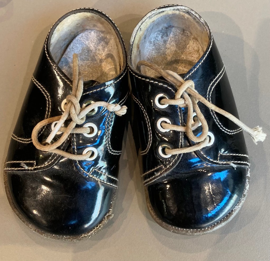 De lakschoentjes met vetertjes staan symbool voor haar gelukkige jeugd. Haar ouders waren dolgelukkig toen ze op de wereld kwam. Blij met het kleine meisje, iedere dag opnieuw. Een veilig warm nest. En ze mocht de wijde wereld in op die mooie veterschoentjes. Er op uit en van alles ondernemen, onderzoeken, proberen. Vallen en opstaan en papa of mama maakt de vetertjes weer vast. Niet bang zijn. Doe maar. Leef maar. Woeker maar met je talenten. Een mooi begin van een mooi leven. Een ‘rijk’ leven.