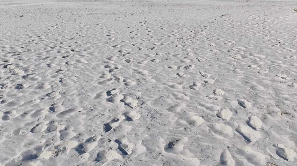Als je naar het strand geweest bent vind je het overal. Zand. In en onder je schoenen, in je kleren, onder je nagels, op je huid, in je haren. Schoenen uit doen, helpt niets, overal vind je zand, hoor je zand, zie je zand in dat gezellige huisje aan de rand van de zee. Vanmorgen toen het zo koud was pakte ik het jack dat ik voor het laatst gedragen had aan zee. Toen ik mijn handen in de zakken stopte voelde ik het al: souvenir van het eiland: zand!