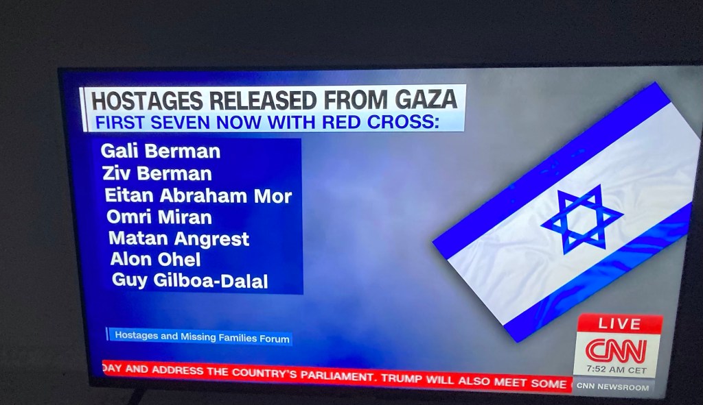 Vanmorgen om iets voor acht Nederlandse tijd verschenen hun namen, op het scherm van CNN, de eerste twee van de 20 gijzelaars die vandaag werden vrijgelaten. 2 Jaar na de brute aanval van Hamas terroristen op het muziekfestival Supernova Sukkot Gathering en de kibboets Kfar Aza.